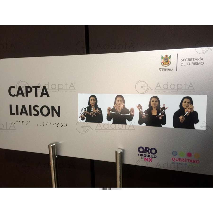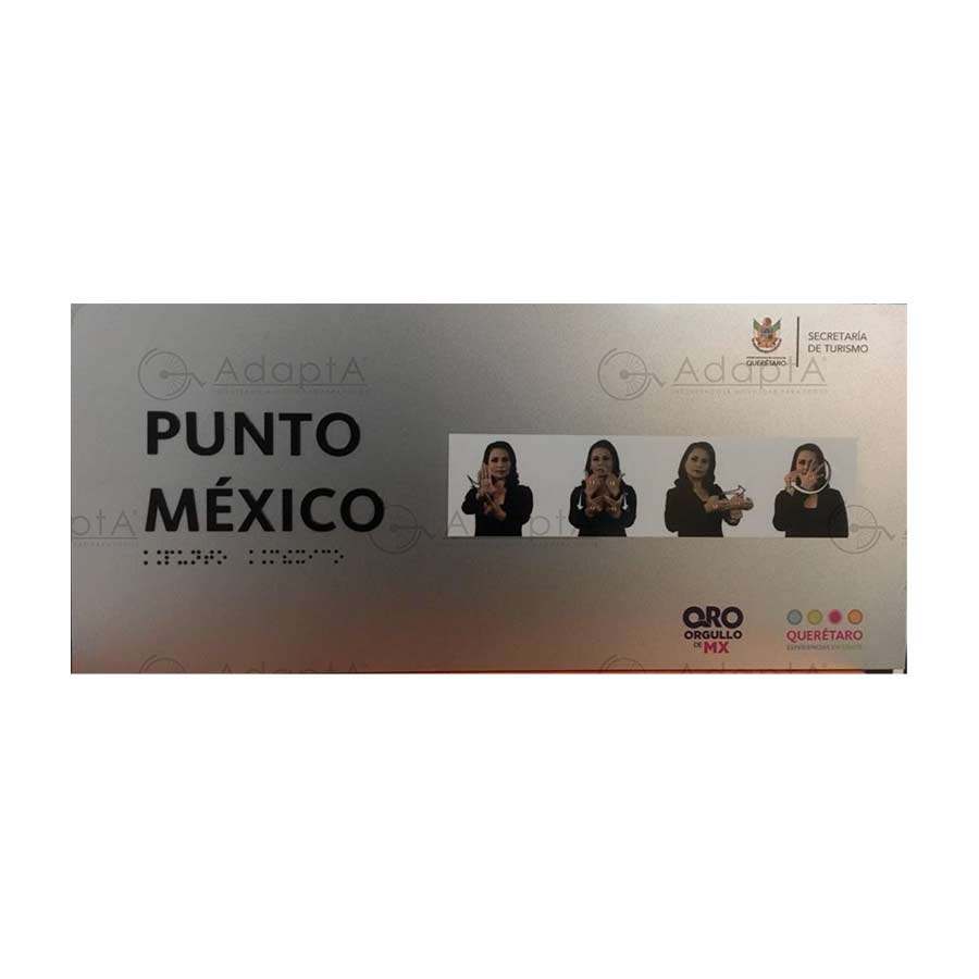 Placa Braille Inclusiva 25 x 40 cm. elaborada a base de lámina de acrílico y/o aluminio calibre 14 o SPEC 50, textos en alto relieve, Lengua de Señas Mexicana y textos en código Braille con Rasters® de acrílico (máximo 25 caracteres), acabado para su protección con barniz UV Publicear® de Axalta®, Preparada para ser adosada por medio de cinta VHB doble cara.