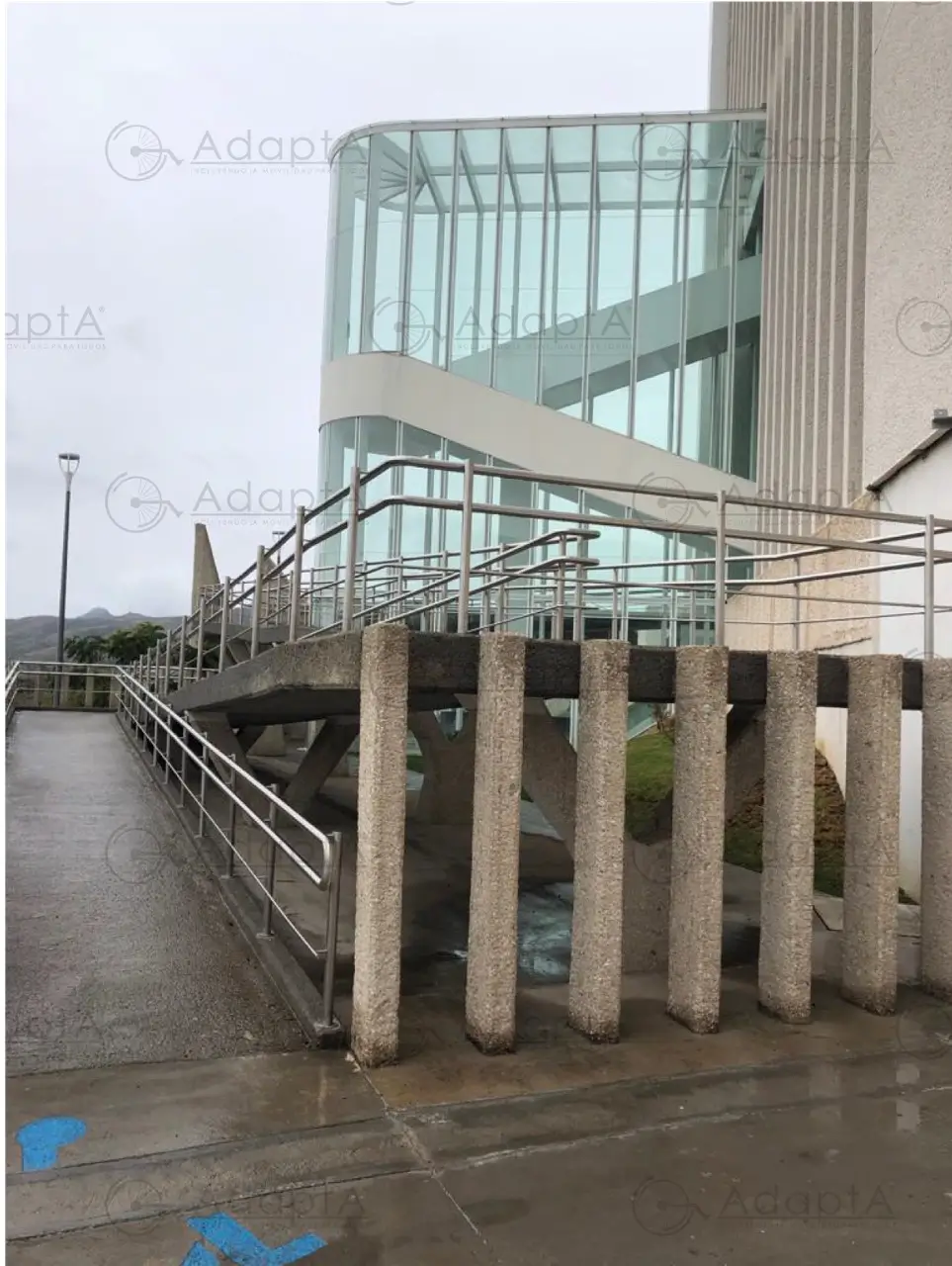 Barandal lateral con pasamanos a doble altura fabricado con tubo en acero inoxidable de 1 1/ 2" cal-18 medidas generales: 1,50x90 de altura. Marca Adapta.